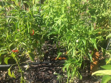 Bed 6 (4 ft * 4ft)- Tomatoes (Amos Coli, Mr. Stripey), Black beauty zuchini from baker creek, Italian basil, 4 red cayenne pepper plants